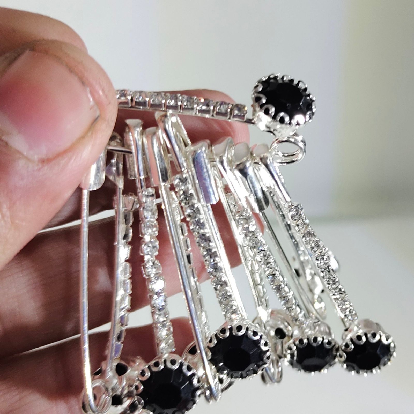 Add a touch of elegance and convenience to your traditional attire with our pack of diamond safety pins. Perfect for securing hijabs, saris, kurtis, and dresses, these pins are a must-have accessory for any wardrobe.