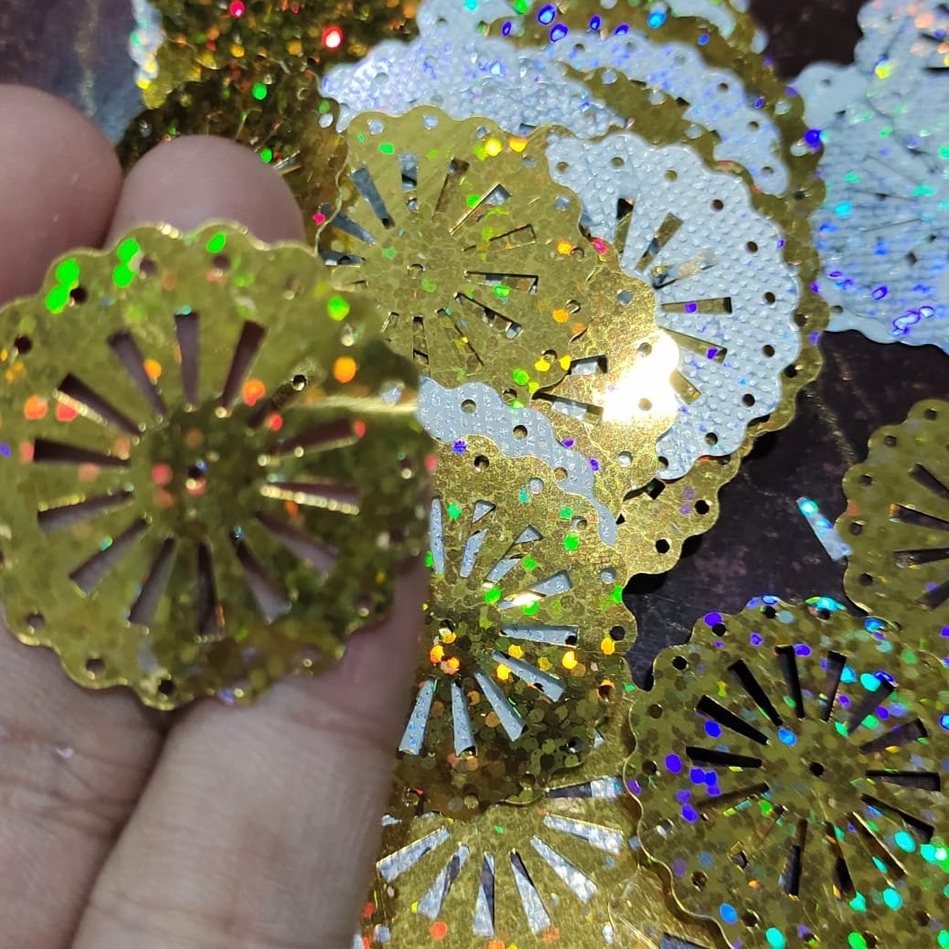 pack 50 Grams Circular PVC Flowers White / Golden both side – trimming 50 gram gold sewing sequin fringe – Dress desgin – embroidery design – sequin craft